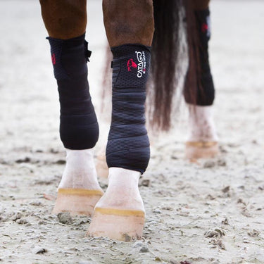 Deze Catago FIR-Tech combi bandages in fleece en elastiek, hebben keramische deeltjes die in het fleece zijn geweven. Deze deeltjes reflecteren de lichaamswarmte van het paard door middel van elektromagnetische infrarode warmtestraling, die het weefsel binnendringt en de bloedvaten in het paard vergroot. Dit zorgt voor een verbeterde bloedtoevoer, maar ook voor het tegengaan van spanning en vermoeidheid in de benen.