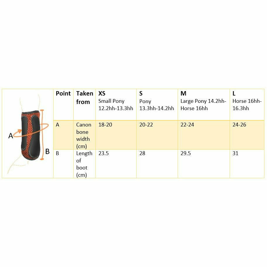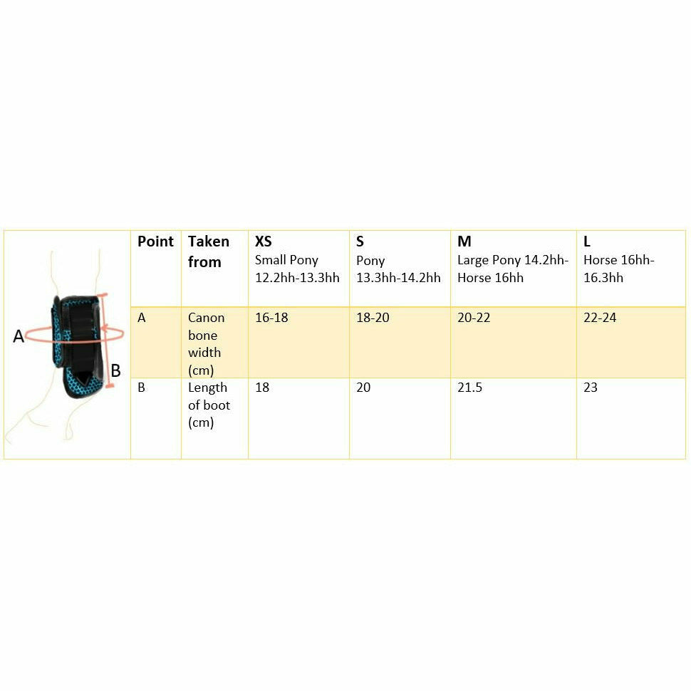 Equilibrium’s maatschema gaat uit van je paards stokmaat, in combinatie met de omtrek van het been en de hoogte van de beschermer.