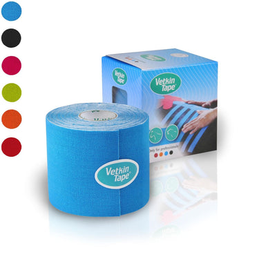 - VetkinTape® rollen zijn breder dan de originele kinesiologie tapes voor de humane markt en zijn verbeterd met een sterkere en meer adhesieve acryllaag (30% meer adhesie).