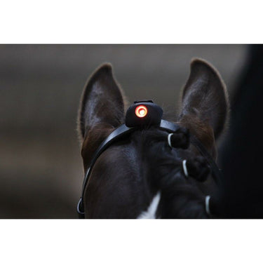 Es wird am Zaumzeug zwischen den Ohren befestigt und misst den Kopfwinkel des Pferdes relativ zur Vertikalen. Wenn Sie mit dem Pferd arbeiten und es sich beugt oder um den Hals legt, erkennt ein präziser digitaler Sensor den Winkel des Pferdekopfes. Das Display zeigt dann den Winkel mit farbigem Licht an: für die Vertikale: blaues Licht. Auf der Vertikalen: grünes Licht. Hinter der Vertikalen: rotes Licht.