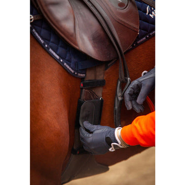 Je plaatst de Hylofit hartslagmeter onder je singel (kan aan zowel brede, smalle en springsingels bevestigd worden), je klikt een zender in de hartslagmeter (bijvoorbeeld een Polar H10), de ingebouwde elektroden leggen de hartslag van het paard vast en met behulp van de Bluetooth zender kun je de hartslag van het paard aflezen in een App of op je smartwatch.